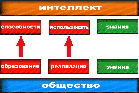 Человек развивает способности интеллекта в зависимости от уровня возможностей использовать знания, то есть от возможностей реализации знаний.