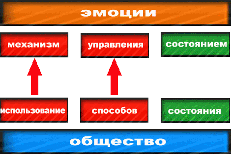 Механизм эмоций человек формирует на основе тех эмоций, которые используют окружающие (общество), а управление своими эмоциями человек производит на основе способов, которые наблюдает в обществе.
