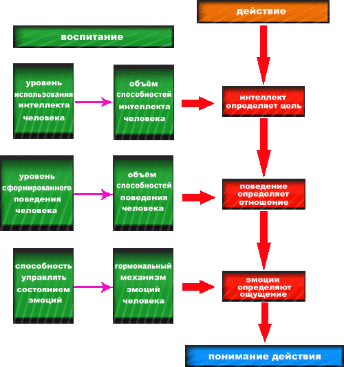 Воспитание формируется на основе блоков познания создающих в человеке части воспитания: интеллект, поведение, эмоции.